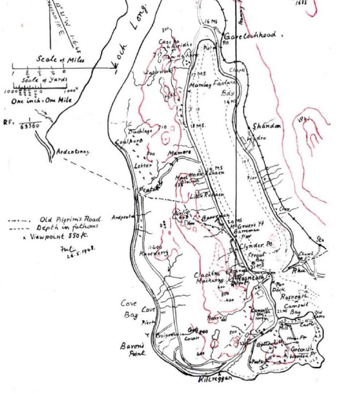 The name of Clynder is apparently derived from Clandearg, Clyndairg or Claon Dearg meaning ‘Red Slope’ or Cluain Dearg ‘Reddish Meadow’. While Gareloch is Gaelic for ‘Short Loch’. The meaning of the place name for Rosneath is not so clear, ‘ros’ means point or promontory but ‘neath’ is interpreted differently by Gaelic scholars. The name of Rosneath may have its roots far earlier, when it was settled in the 6th Century by St. Modan who was a travelling missionary, Abbot and possibly the son of an Irish chieftain, who founded a church at Ros Neimhidh.