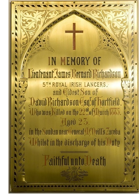 - James Bernard Richardson, listed on the memorial plaque in St. Modan’s Church, who died at the Battle of Tofrek, Sudan, during the 1884 – 1885 Mahdist (Sudanese) War