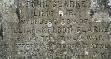 - John Clarke, listed in the old churchyard on the grave William Nelson Clarke. On the rear (West) side of the stone is a memorial to John his son who died during the 1878 – 1879 Anglo-Zulu War war.