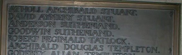 Memorial – Royal Engineers Memorial, Rochester Cathedral and on his father’s grave stone in Rosneath old churchyard.