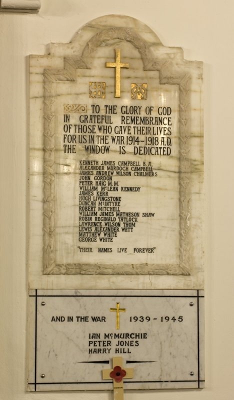 The Remembrance Memorial in St. Modan’s Parish Church Rosneath, has the names of Sixteen men who died during World War I, and three men who died during World War II. The following pages contain records of those Nineteen men, who are recorded on that memorial.