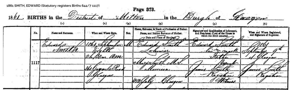 Concerning Edward’s birth in Glasgow and the newspaper reports from the Dundee Evening Telegraph and the Lennox Herald:-