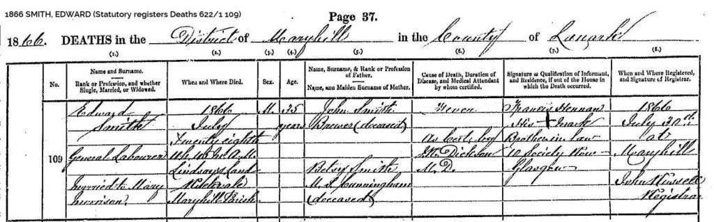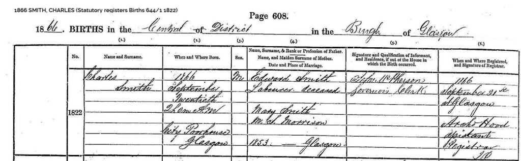Informant – Mary Smith, Sister, 268, Garscube Road, Glasgow.