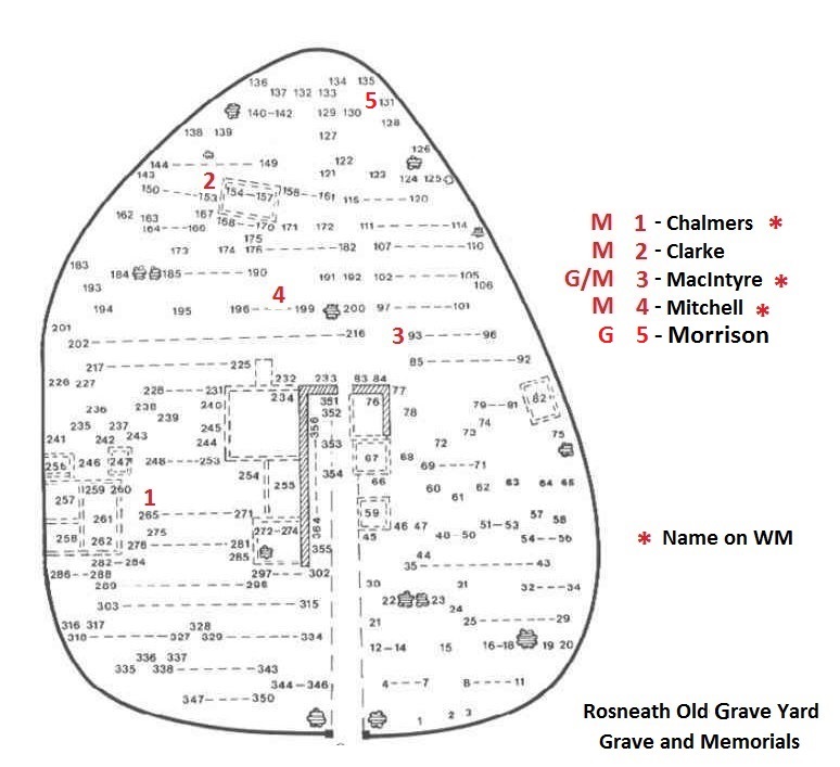 Sadly, many families where not able to bring their loved one’s home. Only on a few occasions are the those that died in conflict or the aftermath able to be buried in the old Rosneath Cemetery. There is at least one, while others are memorialised by their families on the gravestones. The Map shown below of the old Rosneath Graveyard lists those that are known. Whilst there remain further investigations of those that my have given their lives in conflict prior to the First World war. Once this is understood they will be added.